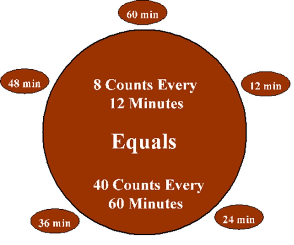 Previous Setting = 8 counts/12 minute cycle Current Setting = 4 counts/20 minute cycle
